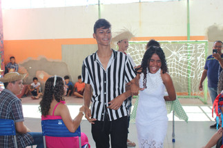 Nossas crianças foram com trajes típicos, tivemos muitas brincadeiras, como cabo de guerra. A comida foi a mais tradicional: munguzá, canjica, pamonha… tivemos nossa quadrilha acompanhada por um trio de forró que só tocou as melhores músicas. Nossas crianças se divertiram, se alimentaram, dançaram. Trouxemos as cores, os sons, e a alegria junina e do povo nordestino para nossa celebração, reforçando o compromisso com a cultura e a cidadania.